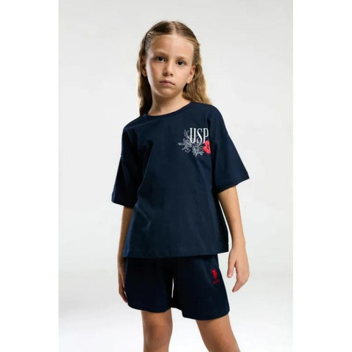 ست تیشرت آستین کوتاه و شلوارک راحتی دخترانه یو اس پولو مدل us2072-G