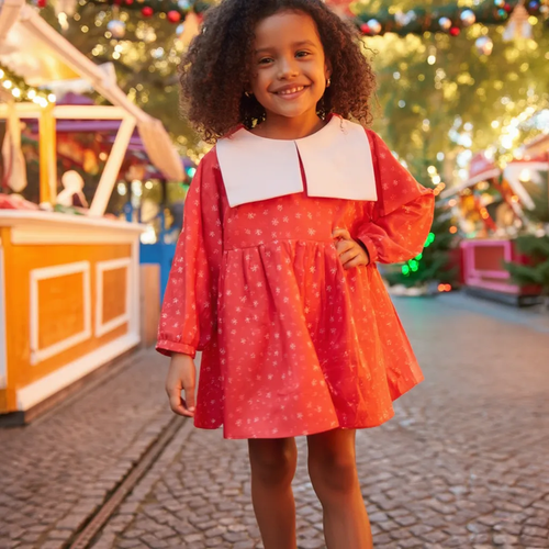 پیراهن آستین بلند یقه گرد دخترانه مدل عیدانه ۳۴۵۷