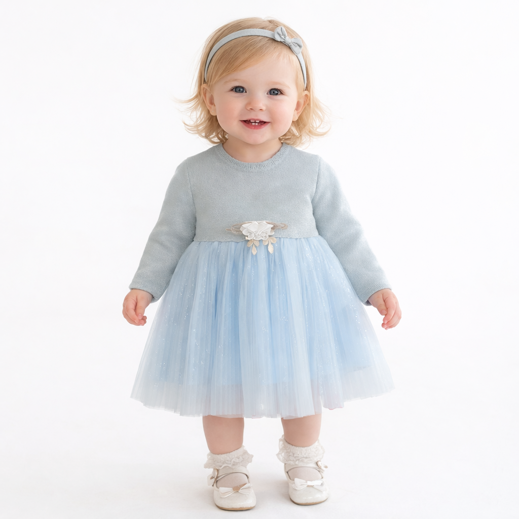 پیراهن آستین بلند یقه گرد دخترانه مدل ۴۱۳۵ عیدانه