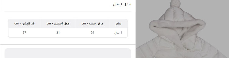 جدول سایز بندی در البوم تصاویر محصول