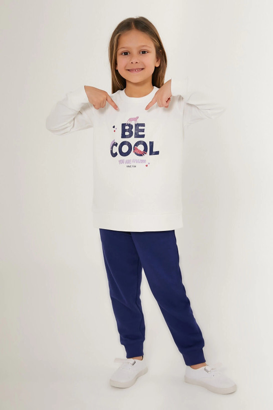 بلوز این ست به رنگ سفید بوده و با چاپ گرافیکی جذاب "BE COOL" تزئین شده است که به استایل کودک شما انرژی و نشاط میبخشد. شلوار سرمهای رنگ این مجموعه نیز با مدل اسلش طراحی شده که علاوه بر زیبایی، راحتی کامل را هنگام حرکت و بازی فراهم میکند. کمر کشی و بند قابل تنظیم شلوار، باعث میشود که کاملاً متناسب با سایز کودک شما باشد.