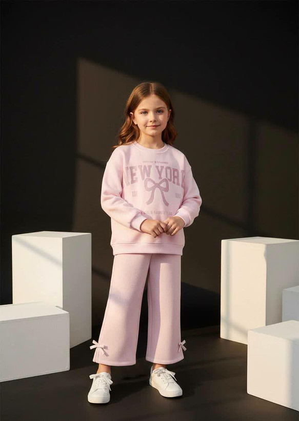 ست سویشرت و شلوار اسپرت دخترانه مدل پاپیون NewYork (۴ تا ۵ سال)