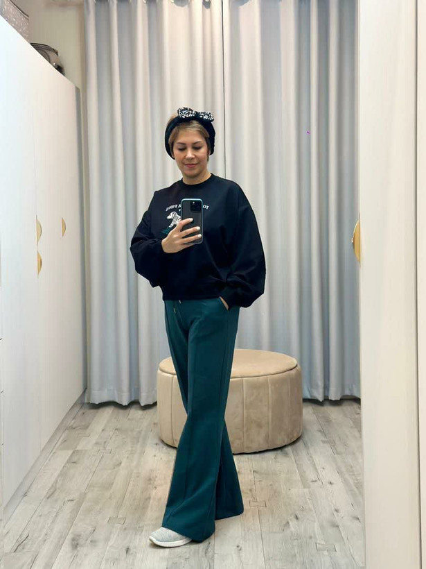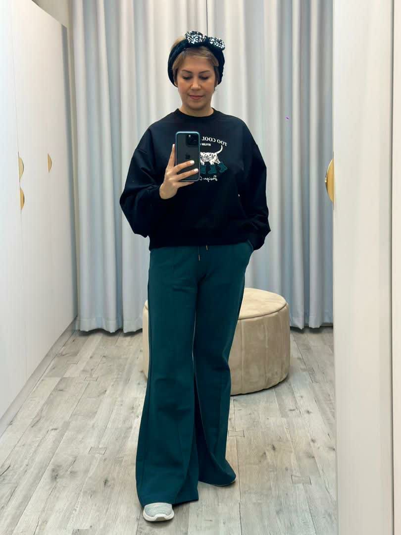 شلوار: شلوار این مجموعه با رنگ خاص سبز یشمی و مدل دمپا گشاد ، استایل شما را منحصربهفرد میکند. این مدل شلوار نهتنها بسیار ترندی و امروزی است، بلکه به کشیدهتر دیده شدن پاها نیز کمک میکند. جنس باکیفیت و کمر راحت آن، این شلوار را برای استفاده طولانیمدت در خانه، پیادهروی یا دورهمیهای دوستانه مناسب میسازد.