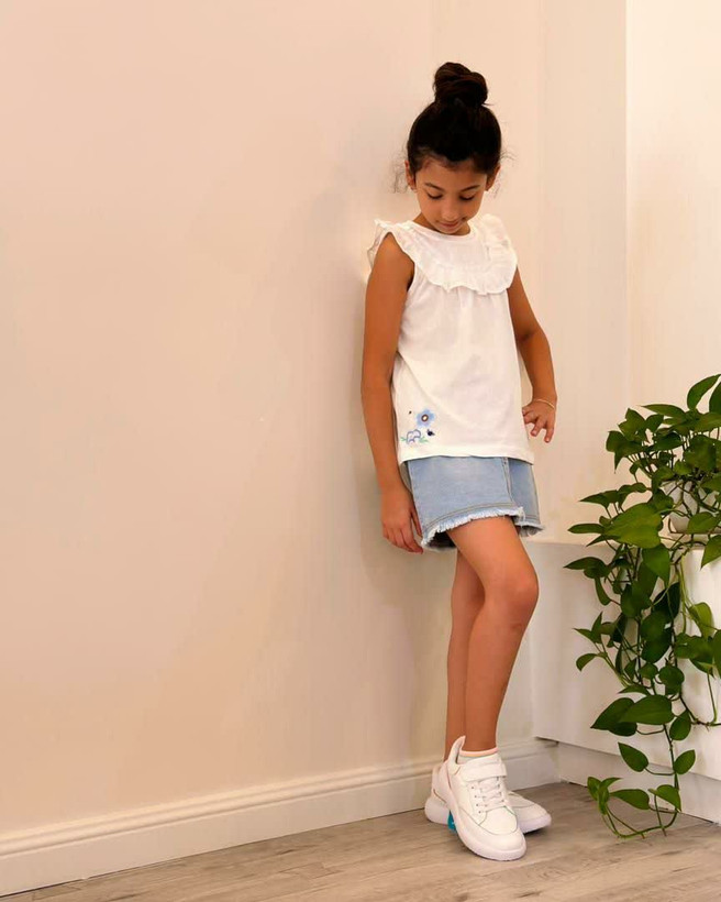 یکی از برجستهترین ویژگیهای این دامن، پارچه جین بسیار نرم و لطیف آن است که برخلاف بسیاری از پارچههای جین، کاملاً منعطف بوده و راحتی بینظیری را برای کودک فراهم میکند و هیچگونه محدودیتی در حرکت او ایجاد نمیکند.