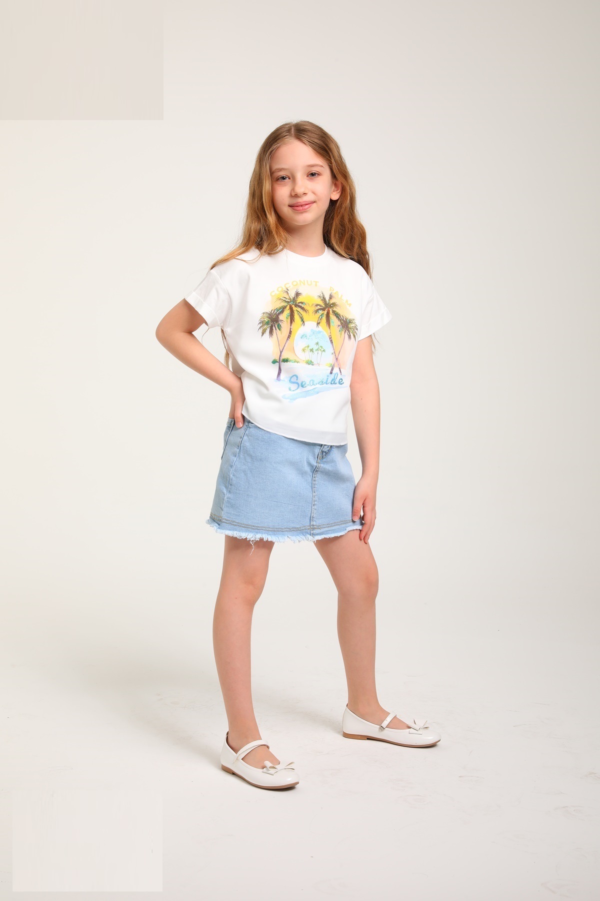 طراحی این دامن با لبههای ریشریش (Frayed Hem) در پایین، ظاهری مدرن و جذاب به آن بخشیده که به راحتی با انواع تیشرتها و بلوزها ست میشود. مهمترین مزیت کاربردی این محصول، وجود کش تنظیم داخلی در قسمت کمر است. این ویژگی به شما امکان میدهد تا سایز کمر را به طور دقیق متناسب با اندام کودک خود تنظیم کنید و از خرید خود برای مدت طولانیتری استفاده نمایید.
