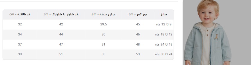 جدول سایز : در البوم عکس محصول آمده است.