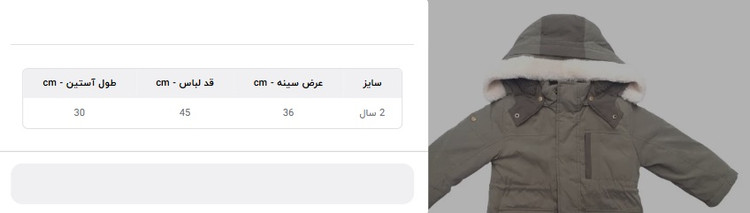 جدول سایز در البوم تصاویر محصول