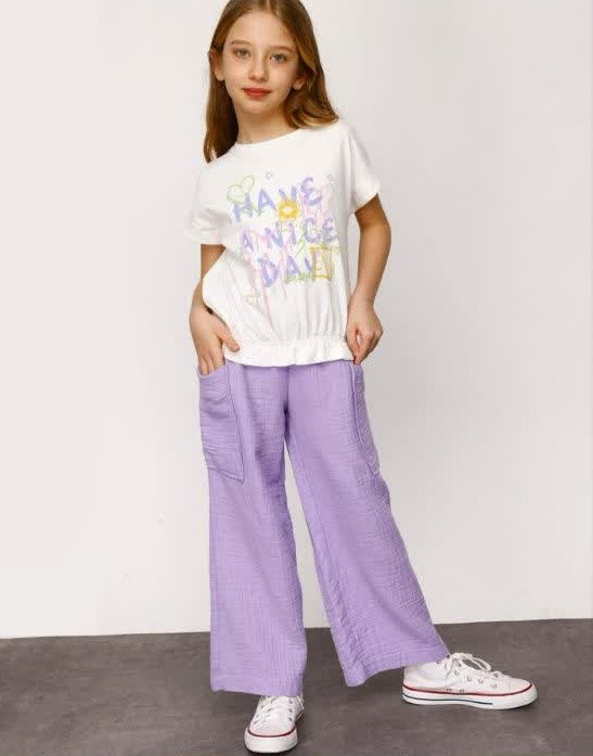 شلوار موسلین بنفش با استایل بگ ساخت کشور ترکیه می باشد و از کیفیت بالایی در دوخت و پارچه برخوردار است . استایل و تنخور این کار بسیار زیبا است . ۲ جیب در قسمت جلو طراحی شده است. کمر این شلوار دارای کش میباشد و تا چند سانت کش می اید ، اندازه درج شده حالت عادی شلوار است.
