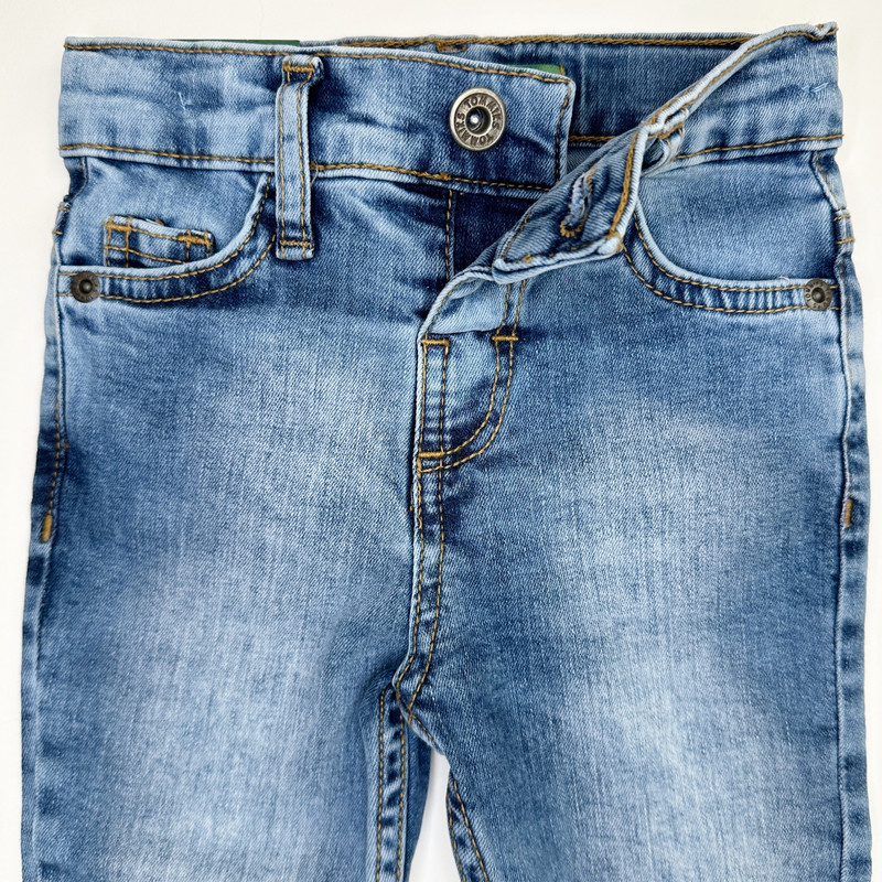 شلوار جین با دوخت و پارچه عالی و طراحی کلاسیک تولید شده. رنگ این شلوار بسیار خوشرنگ و سنگور فوق العاده ملایمی دارد ،این شلوار محصول کشور ترکیه در میباشد. پارچه این شلوار بسیار نرم و لطیف می باشد که همین موضوع باعث شهره بودن ترکیه در تولید جین است. مناسب استفاده روزمره، پوشش نیمه رسمی میباشد و رنگ آن آبی است.. در قسمت کمر این شلوار دکمه و کش تنظیم کار شده تا براحتی لباس فیت کمر کودک شود. برای مشاهده اندازه دقیق سایزهای به راهنمای سایز درهمین صفحه مراجعه کنید. کودکانمان لایق بهترین ها هستند. از کودکی برای دلبندمان لباس اورجینال بپوشانیم.