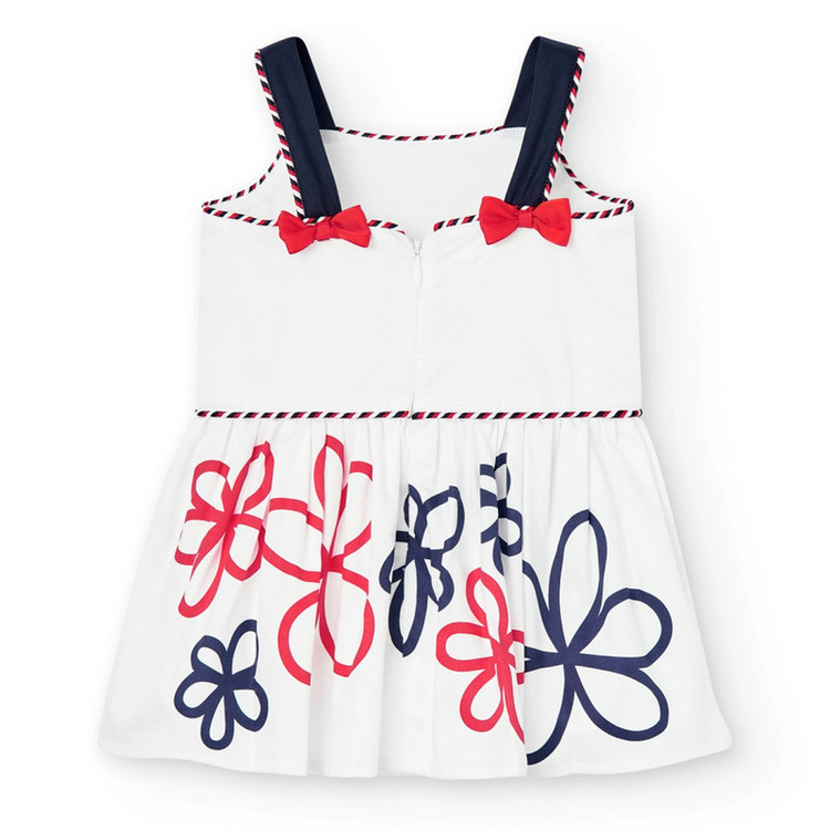 این پیراهن فوقالعاده زیبا از یکی از برندهای مطرح اسپانیایی است که با دقت و ظرافتی مثالزدنی دوخته شده است. طراحی آن ترکیبی از سادگی و لطافت و ظرافت است؛ پارچه سفید با خطوط باریک قرمز و سرمهای در قسمت بالایی و طرح گلهای درشت و رنگارنگ در پایین دامن، جلوهای شاد و کودکانه به لباس بخشیده است. جزئیات ظریف مانند نوارهای حاشیهدار قرمز و سرمهای و پاپیونهای کوچک روی بندها، نشان از دقت بالای طراحی و دوخت دارد. این لباس برای مناسبتهای خاص یا مهمانیهای تابستانی یا حتی یلدا و کریسمس انتخابی بینظیر است. برای مشاهدهی مجموعهای از بهترین کارهای برندهای اورجینال ترک و اروپایی، میتوانید روی مجموعه پوشاک کودک الفی در همین صفحه کلیک کنید و از مدلهای متنوع و خاص دیدن کنید.